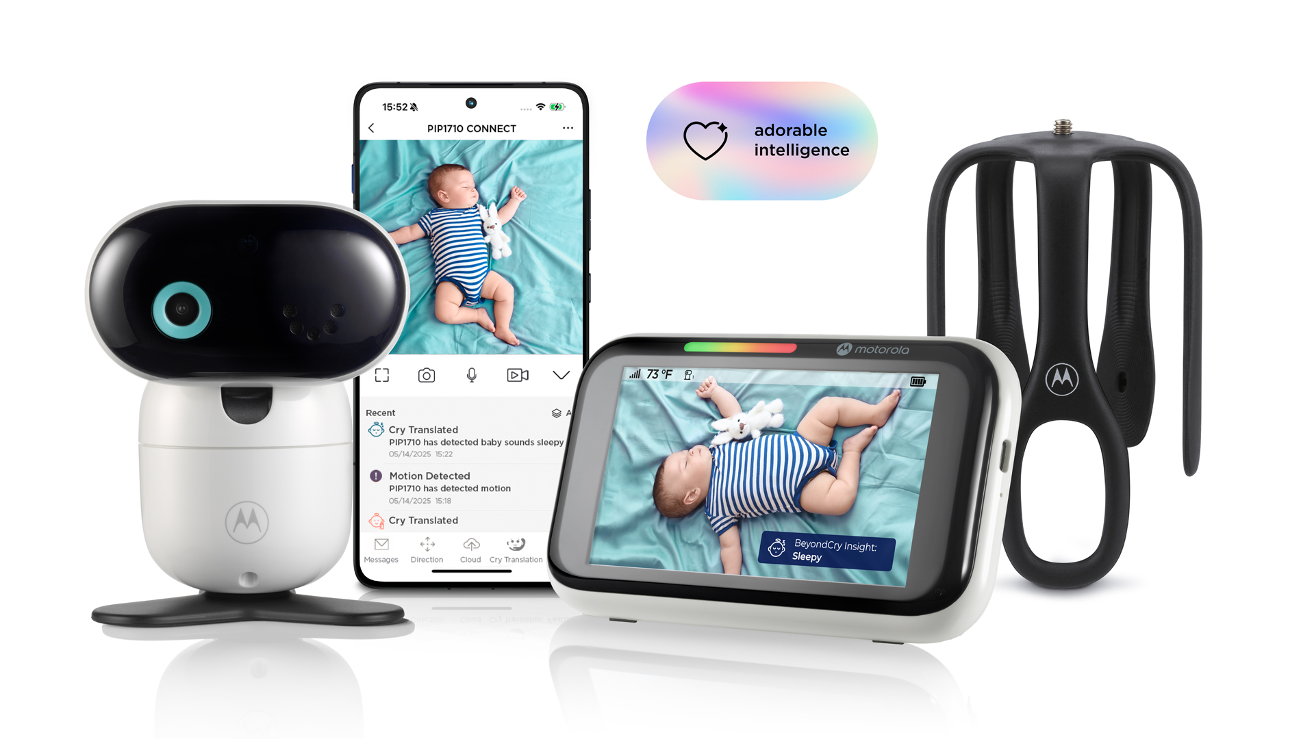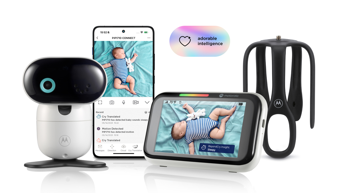 The Motorola PIP1710 CONNECT combines next-gen tech with parent-first design for a smarter, safer nursery. Featuring Adorable Intelligence, powered by Zoundream’s BeyondCry™, it uses AI and sound recognition to analyze and interpret baby cries, helping families respond meaningfully.